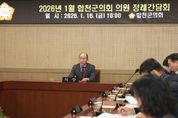 인사이드피플 김재윤 기자 | 합천군의회는 지난 16일, 합천군의회 간담회장에서 병오년 새해 첫 번째 합천군의회 의원 정례간담회를 개최했다고 전했다. 군의원 및 국장· 소장 · 담당관과 관계 부서장 등 20여명이 참석한 이 날 간담회에서는 통합돌봄 TF 구성·운영, 2026년 열린 관광지 조성사업 공모사업 선정 등 향후 주요 군정 추진현황에 관한 부서장의 보고와 함께 제296회 합천군의회 임시회 운영과 2025 회계연도 세입세출결산 검사위원 선임을 위한 협의 등을 논의했다고 관계자는 밝혔다. 이날 정례간담회에서 정봉훈 의장은 “전 의원과 공직자께서는 병오년 새해, 군민을 위한 의정과 군정 실현을 위해 ‘2026년도 군민과의 대화’의 업무추진에 만전을 기하여, 군민이 더욱 살기 좋은 합천군으로 이끌어 주실 것을 당부한다.”고 전했다. 한편 합천군의회는 2025회계연도 세입세출예산 결산검사위원의 선임과 각종 조례안 동의안 등의 심의 · 의결 등을 위하여 오는 2월 5일부터 2월 10일까지 6일간의 일정으로 제296회 합천군의회 임시회를 개회할 예정이다.