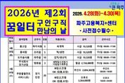 인사이드피플 강애자 기자 | 파주시는 오는 28일부터 30일까지 파주고용복지플러스센터(금촌동 엠에이치(MH)타워 8층)에서 2026년 제2회 ‘구인·구직 만남의 날’을 개최한다. 이번 행사는 지역 기업과 구직자 간 만남의 장을 마련해 실질적인 채용으로 이어질 수 있도록 지원하는 데 목적이 있다. 파주시 일자리센터는 현장에서 다양한 취업 정보를 제공하고, 참여 기업과의 현장 면접을 진행한다. 또한 이력서 지원 등 채용 대행 서비스도 함께 제공해 구직자들에게 보다 실질적인 취업 기회를 제공할 예정이다. 참여 기업들은 식품, 세탁업, 판매업, 물류 및 포장, 반도체 생산/검사, 도서 집책/검수, 전기·전자, 인쇄 등 다양한 분야에서 총 96명을 채용할 계획이다. 구직자는 사전 신청 후 이력서와 자기소개서를 준비해 원하는 기업의 면접에 응시할 수 있다. 이이구 민생경제과장은 “이번 행사는 지난 제1회 구인·구직 만남의 날을 통해 확인된 현장의 수요와 의견을 반영해 더욱 내실 있게 준비했다”라며 “앞으로도 지역 여건에 맞는 맞춤형 일자리 연계 행사를 지속적으로 추진하겠다”라고 밝혔다. 한편, 지난 2월 열린