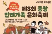 인사이드피플 강애자 기자 | 중랑구는 오는 11월 8일 토요일 오전 11시부터 용마폭포공원 다목적 광장에서 ‘제3회 중랑 반려가족 문화축제’를 개최한다. 중랑구가 주최하고 ㈜한국어질리티연합이 주관하는 이번 축제는 반려인과 비반려인 모두가 함께 즐기며 사람과 동물이 조화롭게 공존하는 문화를 조성하기 위해 마련됐다. 축제는 무대존, 플레이존, 부스존 등 3개 구역에서 다채로운 볼거리와 즐길 거리를 제공한다. 개회식은 오후 1시부터 류경기 중랑구청장 등 주요 내빈과 지역 주민 200여 명이 참석한 가운데 진행된다. 사전 공모된 ‘2025 중랑 유기동물 입양 사진·수기 공모전’ 시상식이 함께 열리며, 시상식 이후에는 반려견 능력시험과 더불어 행운권 추첨 등 다양한 프로그램이 진행돼 축제의 흥을 돋울 예정이다. 무대존에서는 중랑 K-댕댕이 헌터즈 펫션쇼와 같은 다양한 프로그램이 하루 종일 펼쳐진다. 플레이존은 반려 스포츠와 활동적인 체험 공간으로 구성된다. 펫티켓 5 미션게임, 어린이 훈련사 체험과 반려견 올림픽(기다려·이리와·찾아줘 대회)이 운영되며, 아시아 어질리티 챔피언십 한국 국가대표팀의 시범 공연을