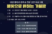 인사이드피플 강애자 기자 | 동두천시시설관리공단은 오는 11월 1일 동두천자연휴양림에서 가을밤 하늘을 배경으로 별자리와 행성을 함께 관측하는 '천문행사 ‘별빛으로 밝히는 가을밤’'을 개최한다. 이번 행사는 시민이 자연 속에서 직접 천체를 관측하며 과학문화의 즐거움을 체험하고, 가족 단위 방문객에게는 휴식과 소통의 시간을 제공하기 위해 마련됐다. 행사는 오후 2시부터 8시까지 자연휴양림 어울림동 세미나실 및 잔디마당 일원에서 진행된다. 낮에는 태양 전용 망원경을 활용한 태양 관측 체험, 저녁에는 전문 강연과 함께 달·행성·별자리 관측 프로그램이 운영된다. 또한 시민 참여형 이벤트인 ‘별자리 퀴즈’도 열려 참가자들이 과학을 보다 쉽고 흥미롭게 접할 수 있도록 구성됐다. 이종진 동두천시시설관리공단 이사장은‘별빛으로 밝히는 가을밤’은 가족과 함께 별을 보며 자연의 아름다움과 과학의 신비로움을 동시에 느낄 수 있는 뜻깊은 행사”라며“앞으로도 시민이 함께 참여할 수 있는 ESG형 과학문화 프로그램을 지속적으로 추진하겠다”라고 밝혔다.