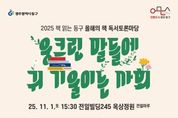 인사이드피플 노재현 기자 | 광주 동구는 11월 1일 오후 3시 30분 전일빌딩 245 전일마루에서 시민과 함께하는 ‘2025 올해의 책 독서토론마당’을 개최한다고 밝혔다. 이번 행사는 단순한 독서 행사를 넘어 가족과 학교, 독서동아리 등 다양한 독서공동체가 모여 ‘웅크린 말들에 귀 기울이는 사회’를 주제로 서로의 생각을 나누는 시간으로 꾸려진다. 이날 토론회에서는 ‘2025 올해의 책’으로 선정된 ‘바나나가 더 일찍 오려면’(정진호), ‘꿈을 걷는 소녀’(백혜영), ‘축복을 비는 마음’(김혜진) 등을 다룬다. 사회는 문학평론가 이소(광주대 문예창작과 교수)가 맡으며, 전문가 패널과 청소년·시민 대표가 참여해 세대 간의 의견을 나누는 방식으로 진행된다. 토론회에는 사전 모집한 청중 50여 명이 참여해 책을 읽지 않았더라도 사회적 주제에 관한 생각을 현장에서 나눌 수 있는 열린 토론으로 진행되는 것이 특징이다. 토론회는 세 작품이 전하는 사회적 메시지와 인간적 성찰에 주목하며, 일상 생활에서 잘 들리지 않던 ‘웅크린 말들’, 즉 사회의 작은 목소리에 귀 기울이는 시간을 제공할 예정이다. 참가자들은 책