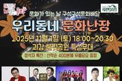인사이드피플 강애자 기자 | 충북 괴산군은 ‘문화가 있는 날’ 주간을 맞아 오는 11월 1일 오후 6시부터 괴강불빛공원 특설무대에서 ‘문화가 있는 날 구석구석 문화배달 '우리동네 문화난장'’ 8회차 행사를 개최한다고 밝혔다. 이번 공연은 올해 마지막으로 진행되는 '우리동네 문화난장' 행사로, 깊어가는 가을밤 군민들에게 흥겨운 문화예술 향연을 선사할 예정이다. 특히 ‘내 나이가 어때서’로 널리 알려진 트로트 가수 오승근을 비롯해 쌍둥이 개그맨에서 트로트 가수로 활동 중인 상호·상민, 퓨전국악밴드 케이소리, 괴산군 홍보대사 가수 강민과 신명화, 그리고 괴산읍두레풍장놀이패의 전통놀이 공연까지 다채로운 무대가 펼쳐질 예정이다. 군은 올해 4월 괴산시장을 시작으로 청안, 칠성, 덕평, 소수 등 군내 8개 지역에서 '우리동네 문화난장'을 운영하며 전통시장, 체육관, 공원 등에서 품바, 비보이, 마술, 주민노래자랑 등 다채로운 공연을 통해 군민들의 큰 호응을 얻었다. 특히 이번 8회차는 2025년 마지막 공연인 만큼, 군은 현장을 찾은 군민들을 위해 선착순 400명에게 무릎담요를 증정할 예정이다.