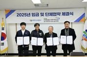 인사이드피플 노재현 기자 | 여주도시공사와 민주노총 공공운수노조 여주도시공사지회는 12월 9일 여주도시공사 사옥에서 2025년 임금 및 단체협약 체결식을 개최했다고 밝혔다. 이번 협약은 상호 신뢰와 존중을 바탕으로 진행된 성실한 교섭의 결실로, 노사 상생과 지속 가능한 발전을 위한 중요한 발판이 될 전망이다. 공사와 노동조합은 이번 협약을 통해 직원들이 안정적인 근무여건 아래 역량을 발휘할 수 있는 환경을 조성하고, 공공기관으로서 사회적 책임을 다하기 위한 제도 개선과 협력 체계를 강화해 나갈 방침이다. 임명진 사장은 “이번 임금·단체협약은 노사 간 소통과 이해를 바탕으로 이루어낸 결실”이라며, “앞으로도 신뢰 기반의 노사 협력을 통해 시민에게 더 나은 공공서비스를 제공할 수 있도록 노력하겠다"고 밝혔다. 여주도시공사는 앞으로도 합리적인 노사관계 정착을 위해 소통과 협력을 강화하고, 시민 중심의 공기업으로서 책임과 역할을 다하기 위한 다양한 노력을 이어갈 계획이다.