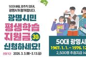 인사이드피플 노재현 기자 | 광명시가 50대 중장년 시민의 배움 기본권 보장을 위해 올해도 평생학습지원금 지원을 이어간다. 시는 오는 3월 3일부터 13일까지 11일간 ‘2026년 광명시민 평생학습지원금’ 신청을 받는다고 26일 밝혔다. 광명시민 평생학습지원금은 생애 전환기를 맞은 50대 시민이 나이·소득·배경과 관계없이 배움을 지속할 수 있도록 생애 1회 1인당 30만 원의 평생학습이용포인트를 지원하는 사업이다. 시민 스스로 자신의 삶과 필요에 맞는 학습을 선택하도록 돕는 것이 핵심 목적이다. 박승원 광명시장은 “배움은 선택이 아닌 누구에게나 보장돼야 할 기본권”이라며 “시민이 나이나 환경의 제약 없이 언제든지 배움을 이어갈 수 있도록 평생학습 기반을 더욱 탄탄히 만들어가겠다”고 밝혔다. 신청 대상은 1967년 1월 1일부터 1976년 12월 31일 사이에 출생한 50대 광명시민이다. 광명시에 1년 이상 계속 거주했거나, 거주기간을 합산해 5년 이상 거주하고 있어야 한다. 시는 총 2천500명을 선정해 지원한다. 59세(1967년생)는 올해가 마지막 지원 대상임을 고려해 우선 선정하고