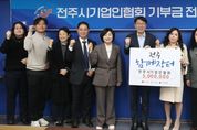 인사이드피플 심정보 기자 | 전주지역 기업인들이 지역 상권과 산업단지 노동자들을 응원하는 ‘전주함께장터’ 프로젝트에 동참했다. 전주시와 전주시기업인협회(회장 강은주)는 24일 전주시장실에서 우범기 전주시장과 협회 관계자 등이 참석한 가운데 ‘전주함께장터 기부금 전달식’을 가졌다. 이 자리에서 전주시기업인협회는 회원사들의 뜻을 모아 마련한 총 500만 원의 기부금을 시에 전달했다. ‘전주함께장터’ 프로젝트는 기업과 공공기관, 민간단체, 시민 등 다양한 주체와 협력해 지역 소비를 촉진하고, 골목상권과 전통시장, 노동자 등 지역경제의 주요 축을 지원하는 범시민 운동이다. 현재 지역 상권 매출을 높이는 동시에, 나눔 문화를 확산해 지역경제 회복을 도모하는 릴레이 형식으로 추진되고 있다. 이날 후원한 기부금은 ‘전주함께장터’ 프로젝트를 통해 추진 중인 산업단지 근로자 아침밥 제공 사업 등 취약 근로자 복지 지원 등에 활용될 예정이다. 시는 앞으로도 ‘전주함께장터’ 프로젝트를 통해 기업과 시민이 함께하는 착한 소비 운동을 지속적으로 추진하고, 산업단지 근로자 등 노동 취약계층을 응원하는 다양한
