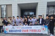 인사이드피플 조은설 기자 | 포항시는 ‘제64회 경북도민체육대회’ 사전경기 농구 남자고등부 8강전에서 구미시를 32대 28로 제압하고 4강에 진출했다. 이번 경기는 지난 27일 예천에서 열린 가운데, 포항시는 이번 대회 유력 우승 후보로 꼽히는 구미시를 상대로 경기 초반부터 팽팽한 접전을 펼친 끝에 값진 승리를 거뒀다. 특히 이번 8강전은 포항시 농구 종합우승을 향한 중요한 분수령이 되는 경기로, 선수들은 끝까지 집중력을 유지하며 투혼을 발휘해 의미 있는 결과를 만들어냈다. 이날 경기장에는 포항시 체육산업과와 북구보건소, 송도동, 송도동체육회, 포항시체육회 관계자 등 100여 명이 함께 응원에 나서 선수들에게 큰 힘을 보탰다. 또한 박재관 포항시 자치행정국장이 직접 현장을 찾아 선수단을 격려하며 사기 진작에 힘을 더했다. 서장원 포항시농구협회장은 “선수들이 끝까지 최선을 다해 좋은 결과를 낼 수 있도록 적극 지원하겠다”며 “남은 경기에서도 마지막까지 최선을 다하겠다”고 말했다. 박재관 자치행정국장은 “어려운 경기 속에서도 끝까지 포기하지 않고 값진 승리를 거둔 선수들이