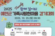 인사이드피플 강애자 기자 | 예천군에서는 오는 25일 오전 9시 30분부터 호명읍 신도시패밀리파크 잔디광장에서 ‘2025 예천군 가족사랑한마음 걷기대회’ 가 열린다. 예천군체육회가 주최·주관하고 예천군이 후원하는 이번 걷기 행사는 패밀리파크 잔디광장에서 출발해 범우리공원과 실개천을 거쳐 다시 패밀리파크 잔디광장으로 돌아오는 약 3.5km 코스로 진행된다. 참가 제한이나 별도 신청 없이 누구나 행사 당일 오전 9시 30분까지 행사장을 찾아 현장 접수하면 되며, 선착순으로 진행되는 접수는 참가 리플릿이 소진되면 마감된다. 걷기 코스 완주와 더불어 참가 리플릿을 활용한 스탬프 미션에 성공한 모든 참가자에게 완보기념품이 증정되고 인생네컷 가족사진 만들기 및 놀이체험 부스 운영, 댄스공연 및 버블쇼 등 풍성한 프로그램도 준비되어 있다. 또한 걷기 코스 안에 댄스존, 비누방울존, 어린이보물찾기존 등 다양한 이벤트존이 마련되어 있어 걷는 즐거움을 배가시키고, 행사 막바지에는 푸짐한 경품추첨도 예정되어 있다. 이철우 예천군체육회장은 “이번 대회가 가족 사랑과 건강을 되새기고, 지역 주민 간 더욱 친밀