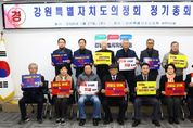 인사이드피플 김재윤 기자 | 강원특별자치도의정회는 1월 27일 11시.도의회 세미나실에서 2026년도 정기총회를 개최했다. 정기총회를 진행한 가운데 의정회원들이 강원특별법 3차 개정안 심사와 통과 촉구 결의문 낭독과 함께 피켓 퍼포먼즈로 강원특별자치도의 제도적 기반 강화를 위한 의지를 한데 모았다. 이번 총회에서는 지난해 추진한 사업 성과 및 예산결산 승인과 2026년도 주요사업계획 및 세입세출예산 의결과 의정회의 지속 가능한 발전과 회원 화합을 도모하기 위한 제15대 임원진 개선이 있었다. 강원특별자치도의정회 박주선 (朴柱善/홍천/1942.06.19.생)회장이 제15대 회장으로 유임(‘26.1.2~’30.1.19/임기4년)됐다. 박주선 회장은 홍천농고(졸), 강원대행정대학원(수료), 홍천군 문화공보실장, 사회과장, 의화사무과장, 내무과장,자치행정과장,기획실장,홍천농고동창회부회장,대한역도연맹공인심판, 국제역도 연맹공인심판, 홍천군궁도회장, 자유총연맹홍천군지부장, 강원도사회 복지협의회회장, 강원특별자치도문화원연합회장, 강원도의정회사무총장, 강원특별자치도의회 제5대의원과 6대의원을 역임하시고, 현재 홍천군문