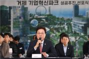 인사이드피플 심정보 기자 | 경상남도와 거제시, 참여기업이 함께 추진하는 ‘거제 기업혁신파크’가 미래형 융합도시 조성을 향한 실행 의지를 공식적으로 천명했다. 박완수 도지사는 18일 소노캄 거제에서 열린 ‘거제 기업혁신파크 성공추진 선포식’에서 사업의 국가적·지역적 의미를 강조하며 “거제시를 세계적인 관광도시로 만들 것”이라고 밝혔다. 선포식에는 박완수 도지사, 변광용 거제시장, 서일준 국회의원을 비롯해 그란크루세·네이버클라우드·다산네트웍스·디스트릭트코리아·수산인더스트리 등 주요 참여기업 대표와 도·시의원이 참석했다. 박 지사는 이날 사업 추진 의지를 밝히며, “디지털 융합 미래도시 성공추진을 위한 협의 자리가 마련된 것을 매우 뜻깊게 생각한다”고 말했다. 이어 “각 분야에서 대한민국 최고 역량을 갖춘 기업들이 함께하는 만큼 기업혁신파크에 대한 기대가 크다”고 밝혔다. 또한 박 지사는 장목관광단지 조성이 본격 추진된 과정을 설명하며 “26년 만에 조성 사업이 재개된 이후로 제대로 만들기 위해 추진해왔다”며 “기업혁신파크 지정 이후, 단일 관광단지로는 세계적 프로젝트를 만들기 어렵다고 판단해 범위를