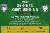 인사이드피플 조은설 기자 | 금산인삼에프씨는(FC)는 2026 시즌 케이(K)4리그 안방 사수를 위한 홈경기 일정을 전격 안내에 나섰다. 이번 안내는 군민들이 미리 경기 관람 계획을 세우고 가족·지인과 함께 경기장을 찾을 수 있도록 돕기 위해 마련됐다. 주요 일정 및 상대팀은 △3월 29일 제천시민축구단 △4월 11일 서산에프씨(FC) △5월 2일 기장군민축구단 △5월 31일 거제시민축구단 △6월 21일 진천케이알에프씨(KRFC) △7월 25일 서울중랑축구단 △8월 30일 진주시민축구단 △9월 5일 평택시티즌 △10월 10일 남양주시민축구단 △10월 31일 세종에스에이(SA)축구단 등이다. 홈경기는 군민들의 관람 편의를 위해 주말 오후 시간대에 집중적으로 배치됐다. 구단은 매번 홈경기마다 다채로운 이벤트와 공연, 지역 특산물 홍보 부스 등을 운영해 금산종합운동장을 단순한 경기장을 넘어선 군민 화합과 소통의 광장으로 만들 예정이다. 구단 관계자는 “선수들에게 가장 큰 힘은 관중석을 가득 메운 군민 여러분의 뜨거운 함성”이라며 “확정된 홈경기 일정을 꼭 확인하셔서 경기장을 찾아주시고 우리