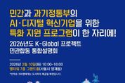 인사이드피플 조은설 기자 | 과학기술정보통신부는 인공지능·디지털 혁신기업의 성장을 지원하기 위한 과기정통부 지원사업들을 한자리에서 설명하는 '한국형 국제 사업(K-글로벌 프로젝트) 민·관 합동 통합설명회'를 2월 10일 오전 10시부터 서울 양재 엘타워에서 개최한다. 통합설명회에서는 인공지능·디지털 창업 초기 기업(스타트업)의 성장 단계별 지원을 위한 지도'멘토링'(1개), 규모 확대'스케일업'(9개) 및 해외 진출(16개) 지원사업, 시험대(테스트베드)와 같은 기반 시설(인프라) 지원사업(2개), 인공지능·데이터·인터넷 기반 자원 공유(클라우드) 등과 같은 디지털 자원 지원사업(3개) 등 총 5개 유형 31개 사업(1,441억 원 규모)에 대한 설명이 있을 예정이다. 동 행사에서는 사업별 전담 기관에서 사업 내용 및 추진 방향 등에 대해 발표를 진행하고, 설명회에 참여한 인공지능·디지털 혁신 기업들이 보다 자세한 정보를 얻을 수 있도록 상담 창구(상담 부스)도 일부 운영할 계획이며, 올해는 기존 참여 민간기관들 외에 엔비디아, 아산나눔재단, 하나은행이 참여하는 등 총 9개 민간기업 및 기관에서 참석해 각 기관에서 운영하는
