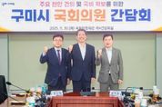 인사이드피플 노승선 기자 | 구미시는 9월 30일 국회를 방문해 구자근, 강명구 지역구 국회의원과 간담회를 열고 지역 주요 현안과 국비 확보 전략을 논의했다. 이날 간담회에는 김장호 시장을 비롯해 구미시 주요 간부 공무원 등 30여 명이 참석했다. 시는 현안 사업 추진 상황과 정부 예산 동향을 공유하며 국회 차원의 전략적 지원 방안을 모색했다. 주요 현안사업으로는 △구미국가산업단지 1~3단지 연결교량 신설 △구미~신공항 철도건설 △대한민국역사박물관(구미산업화역사관) 건립 △새마을운동중앙회 및 연수원 유치 △'5극 3특'국가균형성장 전략 대응 △한국은행 구미지역본부 유치 △'방위산업 소재ㆍ부품ㆍ장비 특화단지'유치 △국가 푸드테크 클러스터 조성 등이 논의됐다. 주요 국비사업으로 △구미시 제조창업 인큐베이팅 센터 구축 △AX 실증산단 구축 사업 △지역 주력 중소기업형 인공지능 데이터 스페이스 구축 △차세대 디스플레이 핵심부품ㆍ소재 기술개발 △반도체 장비 챔버용 소재부품 제조 및 검증 테스트베드 구축 △수요확대형 배터리 테스트베드 구축 △구미 산동 국민체육센터 조성 △푸드테크 연구지원센터 구축 △펫테크 산업화 지원센터 구축 △4단