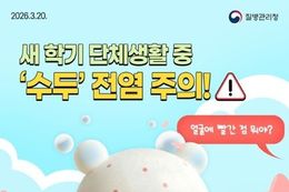인사이드피플 장은미 기자 | ■ 새 학기 단체생활 중 '수두' 전염 주의!! "얼굴에 빨간 점 뭐야?" 새 학기 단체생활이 늘어나면서 어린이집과 유치원, 학교에서 수두가 집단 발생하고 있어! "나 수두인 것 같아!" 수두는 보통 14~16일 잠복기 후 미열과 발진, 무기력함, 물집이 나타나! "긁적 몸이 간지러워…" "수두인가?" · 주요 증상 - 미열, 발진, 무기력함, 물집 수두는 물집에 직접 접촉하거나 기침이나 재채기로 전염될 수 있으니, 단체생활 시 주의가 필요해! "수두, 어떻게 전염될까?" · 감염 경로 - 물집과 직접 접촉 - 기침·재채기를 통한 호흡기 전파 수두는 대부분 자연 회복되지만 예방접종이 가장 효과적인 예방법이고, 등원·등교를 하지 않는 것이 중요해! 수두, 예방접종으로 미리 예방하자구! · 접종대상 및 시기 - 소아의 경우, 12~15개월에 수두 백신 1회 접종 * 13세 이상 미접종자는 4~8주 간격 2회 접종 - 성인의 경우, 4~8주 간격 2회 접종 수두가 의심되면? 등원·등교는 NO! 병원은 GO!
