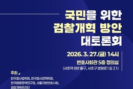 인사이드피플 장은미 기자 | 국민을 위한 검찰개혁 방안 대토론회 - 2026.3.27.(금) 14시 변호사회관 5층 정의실 (서초역 8번 출구, 서초구 법원로1길 21) ■ 주최 한국형사법학회, 한국형사정책학회, 한국법령정책연구원, 서울지방변호사회, 검찰개혁추진단 ■ 참석자 (좌장) - 김재봉 한양대학교 법학전문대학원 교수 (발제) - 최호진 단국대학교 법학과 교수 - 이원상 조선대학교 법학과 교수 (토론) - 홍진영 서울대학교 법학전문대학원 교수 - 이윤제 명지대학교 법학과 교수 - 김기원 서울지방변호사회 수석부회장 - 김규현 엘케이비평산 변호사 - 송지헌 서울경찰청 수사부 경정 ■ 논의주제 국민을 위한 검찰개혁 방안 (발제1) 공정한 형사절차를 위한 보완수사의 구조적 필연성과 책임의 배분(최호진 교수) (발제2) 공소청 검사와 수사기관의 협력의무 구체화 방안(이원상 교수)