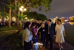 인사이드피플 노승선 기자 | 베트남을 국빈 방문한 이재명 대통령과 김혜경 여사는 23일(현지시간) 저녁 하노이 호안끼엠 호수 인근 구시가지를 깜짝 방문해 베트남 국민들과 소통하며 저녁 시간을 함께했다고 안귀령 부대변인이 서면 브리핑했다. 호안끼엠 호수는 하노이 중심부에 위치한 대표적인 명소로, 베트남 국민들의 휴식과 여가가 이뤄지는 공간이다. 이번 일정은 베트남 국민들의 일상적인 생활공간 속으로 자연스럽게 스며들어 보다 깊이 있는 교감과 이해를 나누기 위한 취지로 마련됐다고 안 부대변인이 설명했다. 베트남 국민들은 한국어로 "안녕하세요", "반갑습니다", 영어로 "웰컴 투 베트남" 등을 외치며 이재명 대통령 부부를 반갑게 맞이했다. 이에 이 대통령 부부는 베트남어로 '안녕하세요'인 "신짜오"로 화답하며, 베트남 국민들과 악수를 나누고 하이파이브를 하는 등 친근한 교감을 이어갔다. 특히 인근 건물 3층에 위치한 카페에서 손을 흔들며 환영의 뜻을 전하는 베트남 국민들에게도 일일이 손을 흔들어 인사를 건네며 현장의 분위기를 더욱 따뜻하게 만들었다. 이 대통령은 현지에서 초등학교에