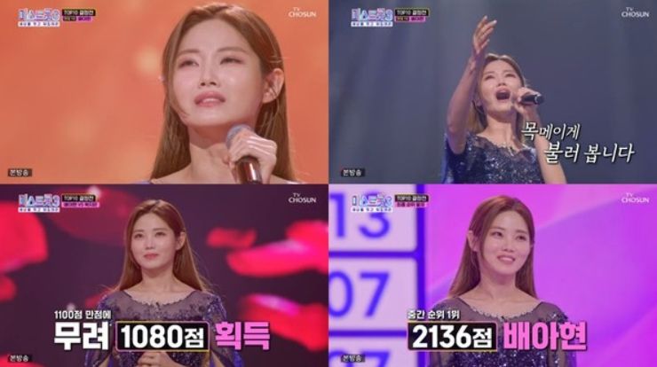배아현은 지난 22일 방송된 TV CHOSUN '미스트롯3'에서 전체 2위를 기록하며 TOP10 진출에 성공했다.