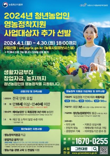 인사이드피플 노재현 기자 | 포항시는 4월 한달 간 청년농업인(청년창업형 후계농업경영인) 영농 정착 지원사업’ 대상자를 추가 선발한다.