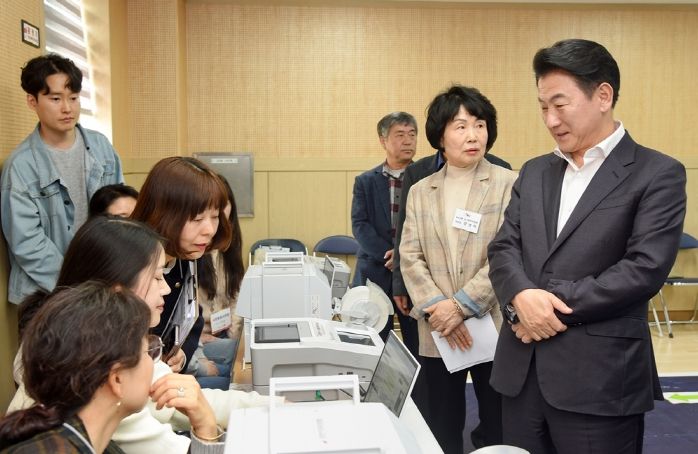 이날 김동근 시장은 시민들이 안전한 환경에서 공정한 한 표를 행사할 수 있도록 투표소 설치 등 준비 상황을 살피고, 선거사무 종사자들을 격려했다.