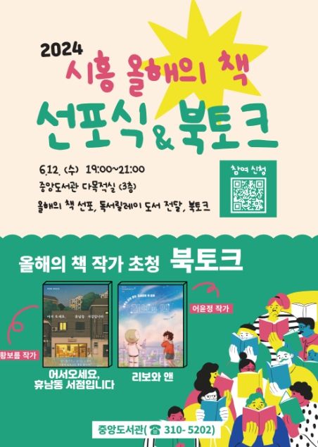 인사이드피플 강애자 기자 | 시흥시는 6월 12일 오후 7시 중앙도서관 3층 다목적실에서 ‘2024 올해의 책 선포식 및 북토크’ 행사를 개최한다.