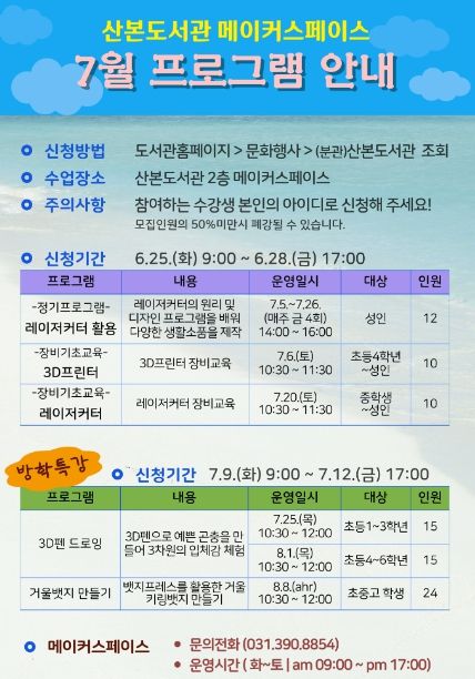 인사이드피플 강애자 기자 | 군포시 산본도서관은 오는 25일부터 메이커스페이스 7월 프로그램 수강생을 모집한다.