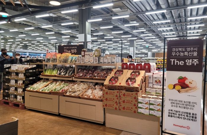 홈플러스 향토특산물 매장 ‘The 영주’는 영주에서 생산된 신선농산물과 농특산 가공품 60개 품목이 판매되고 있다. 지난 1월에는 전국 10개 매장에서 8천여만 원의 판매실적을 올렸다.