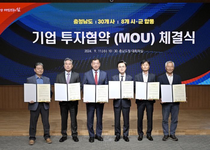 공주시는 11일 충남도청 대회의실에서 김태흠 도지사와 최원철 시장 등이 참석한 가운데 공주, 천안, 아산 등 8개 지자체와 30개 기업이 합동 투자협약을 체결했다.
