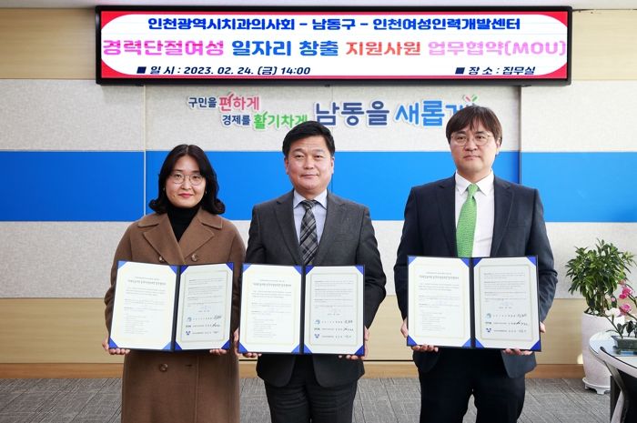 이를 위해 남동구는 최근 구청장 집무실에서 인천시치과의사회(회장 강정호), 인천여성인력개발센터(관장 김승아)와 사업추진을 위한 업무협약을 맺었다.