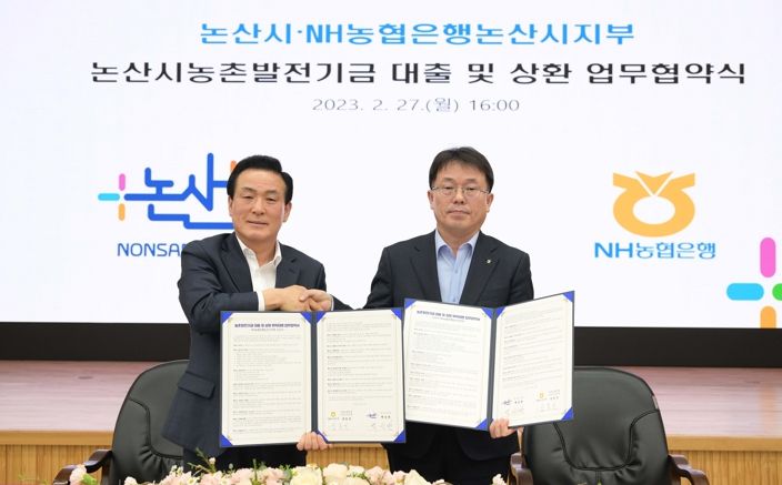 논산시와 NH농협은행 논산시지부는 지난 27일 시청 회의실에서 ‘논산시농촌발전기금 대출 및 상환 업무협약’을 체결했다.