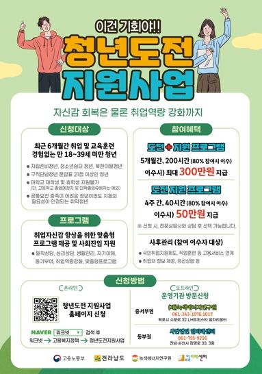 인사이드피플 이호민 기자 | 전라남도는 구직 단념․자립 준비 청년의 안정적 사회 진입을 돕기 위해 8억 9천만 원을 들여 2023년 청년도전 지원사업을 추진한다고 밝혔다.