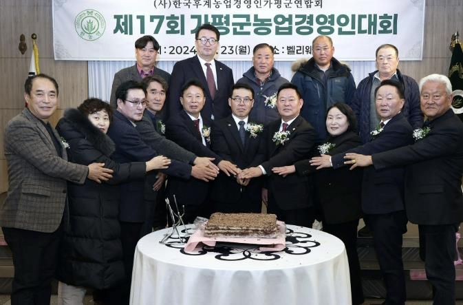 인사이드피플 노재현 기자 | (사)한국후계농업경영인 가평군연합회와 가평군은 23일 벨리웨딩하우스에서 ‘제17회 가평군 후계농업경영인대회’를 개최했다. 이번 행사에는 서태원 가평군수, 김경수 가평군의회 의장과 군의원, 임광현 경기도의원, 유관기관 단체장, 후계농업경영인 및 가족 등 200여 명이 참석했다.
