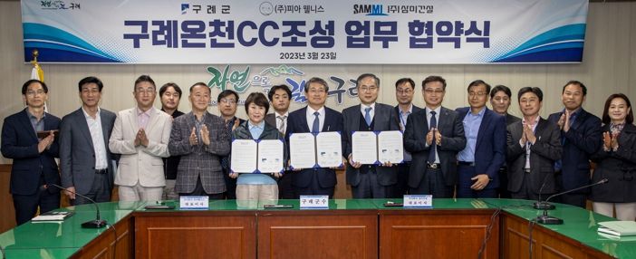 인사이드피플 이호민 기자 | 전남 구례군은 지난 23일 ㈜피아웰니스, ㈜삼미건설과 ‘구례온천CC 조성사업(가칭)’ 추진을 위한 업무협약을 체결했다고 24일 밝혔다.