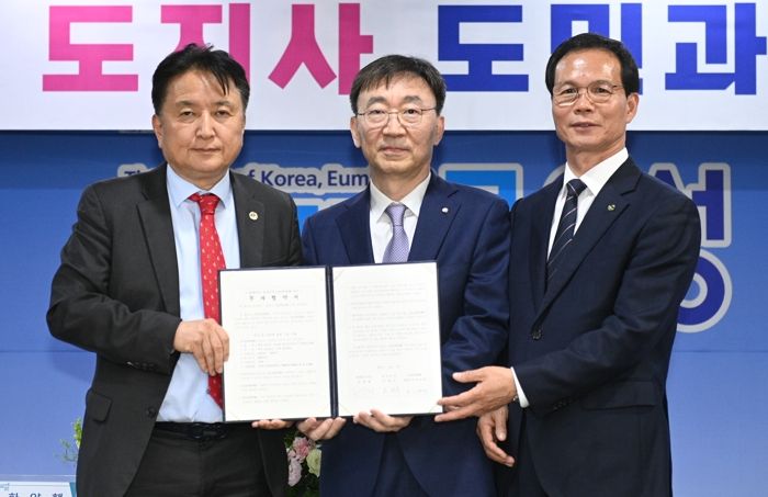 인사이드피플 이호민 기자 | 충청북도와 음성군은 7일 음성군청에서 ㈜유한양행과 투자협약을 체결했다. 협약식에는 김영환 도지사, 조병옥 음성군수, ㈜유한양행 이영래 부사장 등 관계자가 참석했다.