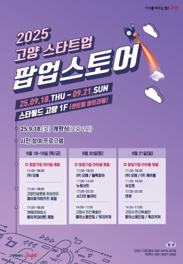 인사이드피플 이현진 기자 | 고양특례시는 오는 18일부터 21일까지 4일간 스타필드 고양에서‘2025 고양 스타트업 팝업스토어’를 개최한다고 밝혔다.