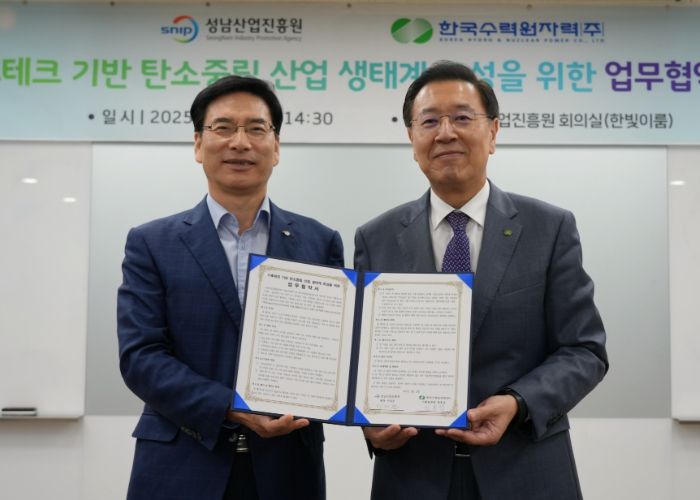 인사이드피플 이현진 기자 | 성남산업진흥원과 한국수력원자력이 기후위기 대응 이라는 국가적 과제 속에서 탄소중립 사회 실현을 위한 기후테크 산업 생태계 조성에 협력하기로 했다.