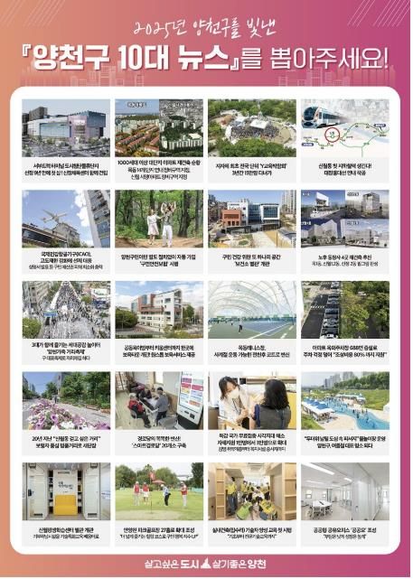 ‘양천구 10대 뉴스 선정’은 한 해 동안 추진된 주요 정책을 되짚어보고, 구정에 대한 구민의 관심을 높이기 위해 매년 시행되고 있다.