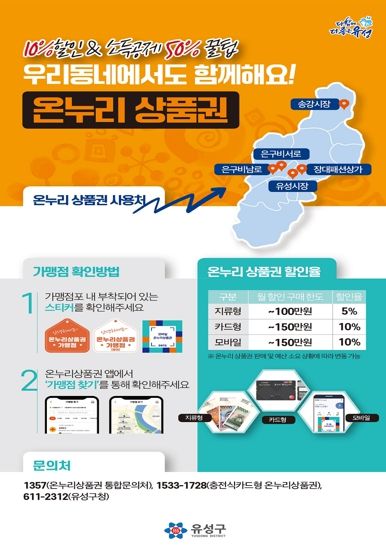 전통시장 및 (골목형)상점가 내에서만 사용할 수 있는 온누리상품권은 골목상권 활성화와 소비촉진을 위해 매월 ▲지류형은 100만 원까지 5% ▲카드형은 150만 원까지 10% ▲모바일은 150만 원까지 10%까지 구매할 수 있도록 한도를 대폭 상향하여 운영되고 있다.