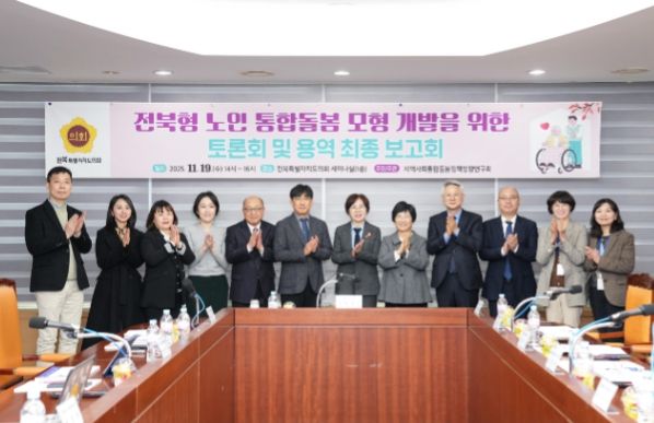 인사이드피플 김재윤 기자 | 전북특별자치도의회 지역사회 통합돌봄 정책방향 연구회(대표 국주영은 의원)는 19일 도의회 세미나실에서 ‘전북형 노인 통합돌봄 모형 개발을 위한 연구용역 최종보고회 및 토론회’를 개최했다.