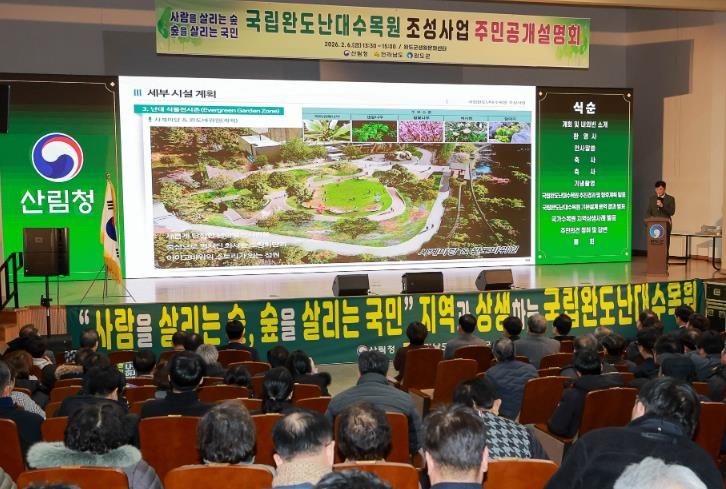 김정섭 전남도 환경산림국장은 “국립완도난대수목원은 완도의 자연환경을 보전하면서도 지역의 미래 성장 동력이 될 중요한 사업”이라며 “주민 의견을 반영해 지역과 함께 성장하는 수목원으로 만들겠다”고 말했다.