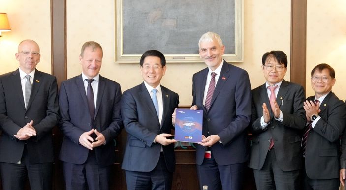 인사이드피플 이호민 기자 | 유럽을 순방 중인 김영록 전라남도지사는 3일(현지 시간) 독일 프랑크푸르트에서 린데, ㈜한양 등과 함께 8억 달러(한화 1조 원) 규모의 블루수소 생산 클러스터 조성 투자협약을 했다.