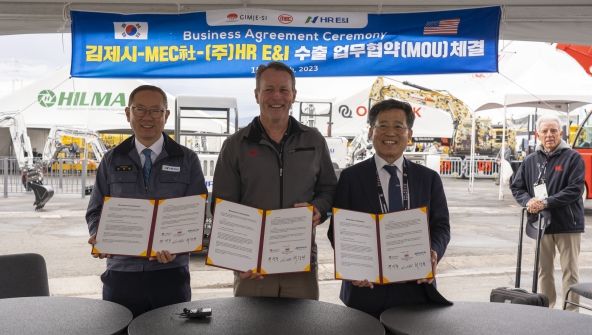 인사이드피플 박미영 기자 | 경제위기 극복을 위해 해외 판로개척에 나선 김제시(시장 정성주)는 현지시간 3월 15일 미국 라스베가스에서 개최 중인 세계적 건설기계 전시회 콘엑스포에서 김제 특장기업 ㈜HR E&I(구. 호룡) 그리고 미국 MEC社와 함께 전기구동 핸들러 및 자주식 크레인 제품에 대한 10억불(1조3천억 원) 규모의 수출 업무협약을 체결했다.