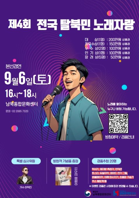 인사이드피플 장은미 기자 | 통일부 남북통합문화센터(서울시 강서구 소재)는 9월 6일 오후 4시, '전국 탈북민 노래자랑'을 개최한다.