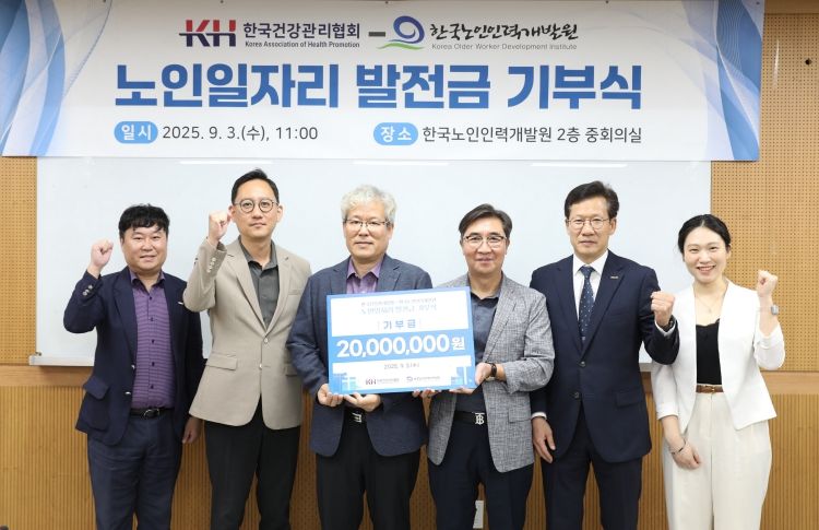 인사이드피플 장은미 기자 | KH한국건강관리협회가 9월 3일 한국노인인력개발에 어르신들의 삶의 질 향상과 건강한 노후 증진을 위한 후원금 2천만 원을 전달했다.