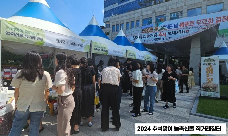 직거래장터는 자매결연지인 여수시, 남해군, 임실군, 단양군, 합천군과 함께 진행되며, 각 지역의 우수 농축수산물을 시중 가격보다 10~20% 저렴하게 구매할 수 있다.