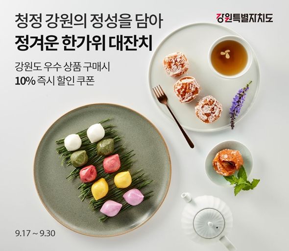 손원천 강원특별자치도 농산물유통과장은 “이번 온라인 강원 기획전을 통해 우리 도의 우수한 농식품이 민족 대명절인 추석을 맞아 전국 소비자에게 널리 알려지는 계기가 되길 바란다”며, “연말까지 두 차례 더 온라인 기획전을 열어 농업인과 생산업체의 소득 증대에 기여하고, 강원 농특산물의 인지도와 시장 경쟁력을 높여 나가겠다”고 밝혔다.