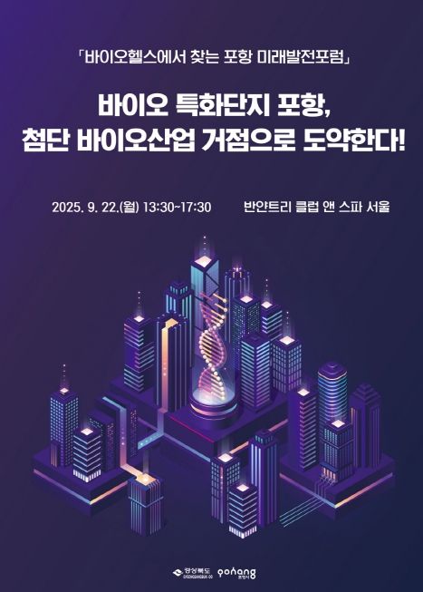 인사이드피플 심정보 기자 | 포항시는 경상북도와 공동으로 오는 9월 22일 오후 1시 30분, 서울 장충동 반얀트리 호텔에서 ‘2025 바이오헬스에서 찾는 포항 미래발전포럼’을 개최한다.