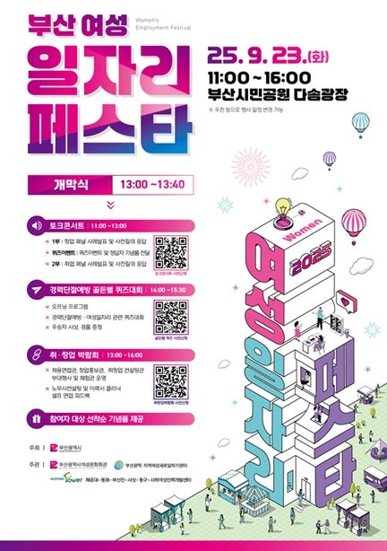 인사이드피플 심정보 기자 | 부산시는 오는 9월 23일 오전 11시부터 오후 4시까지 부산시민공원 다솜마당에서 '2025 부산 여성 일자리 페스타'를 개최한다고 밝혔다.