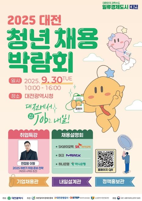 인사이드피플 심정보 기자 | 대전시는 오는 9월 30일 오전 10시부터 오후 4시까지 시청 2~3층에서 ‘2025 대전 청년채용박람회’를 개최한다고 22일 밝혔다.