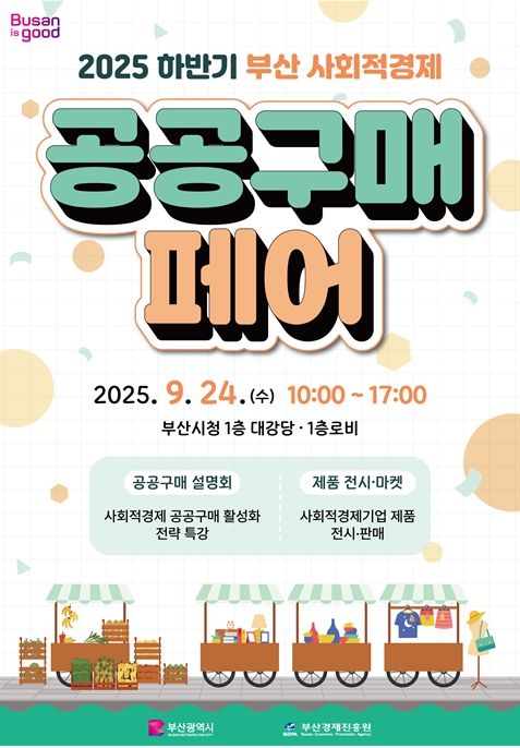 인사이드피플 심정보 기자 | 부산시는 내일(24일) 오전 10시 시청 1층 대강당과 로비에서 '2025 하반기 부산 사회적경제 공공구매 페어'를 개최한다고 밝혔다.