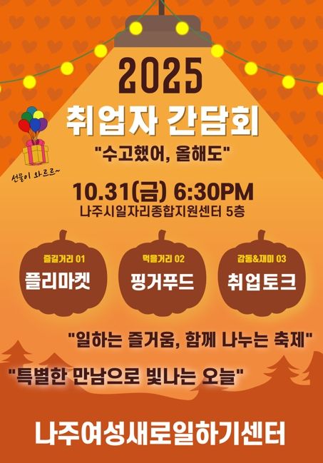 인사이드피플 심정보 기자 | 나주여성새로일하기센터(센터장 최진아)는 오는 10월 31일 나주시 일자리종합지원센터에서 지역 여성 취업자 50여 명이 참여하는 취업자 간담회를 개최한다.