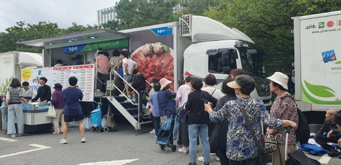 인사이드피플 심정보 기자 | 영주시는 지난 24일 서울 강남구청 주차장에서 열린 '강남구 추석맞이 직거래장터'에 참여해 지역 농특산물 홍보에 나섰다.